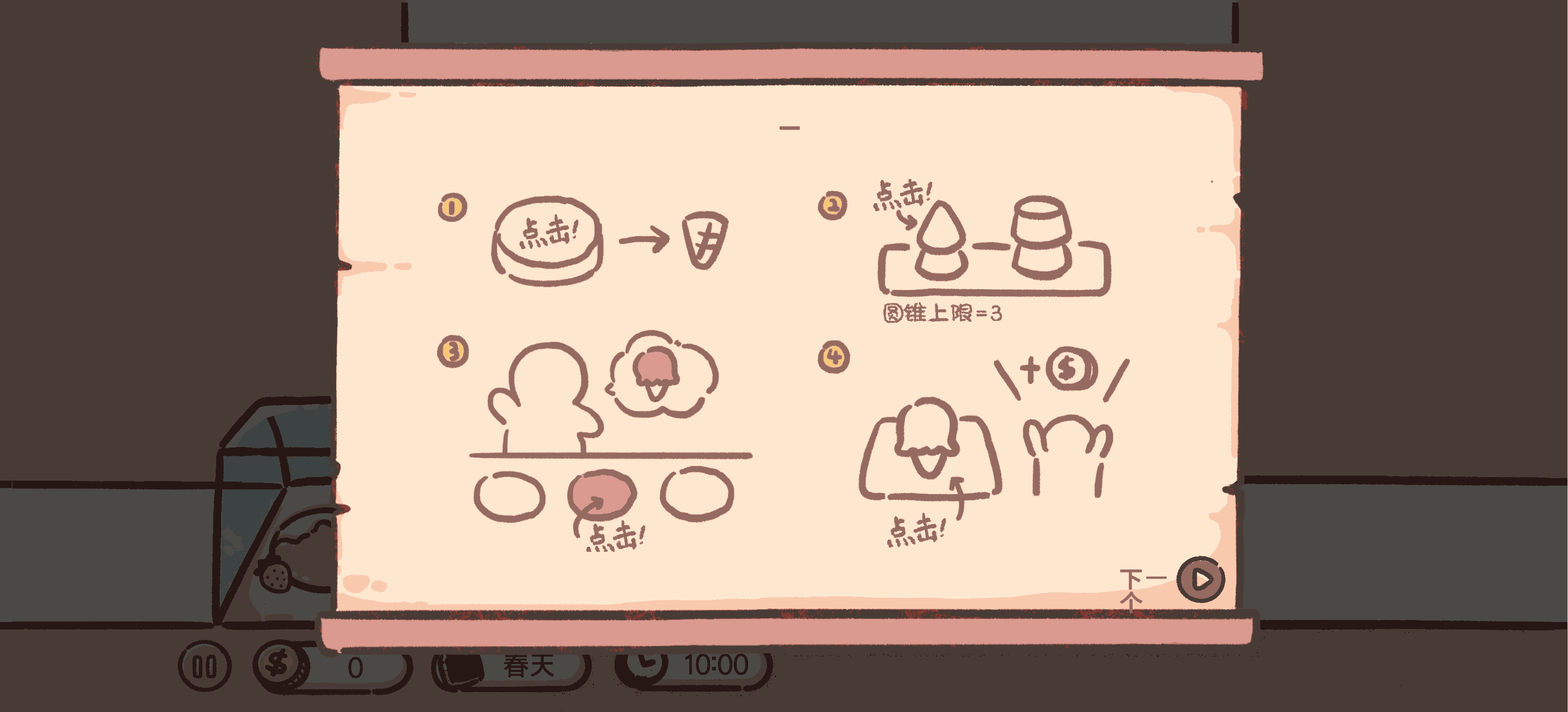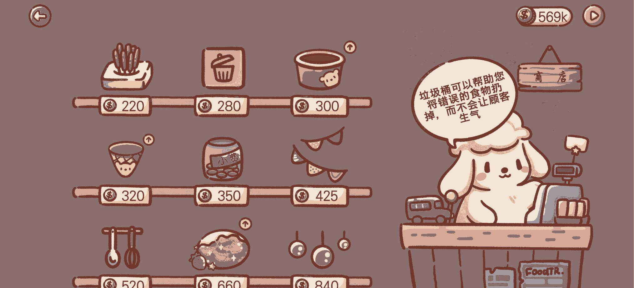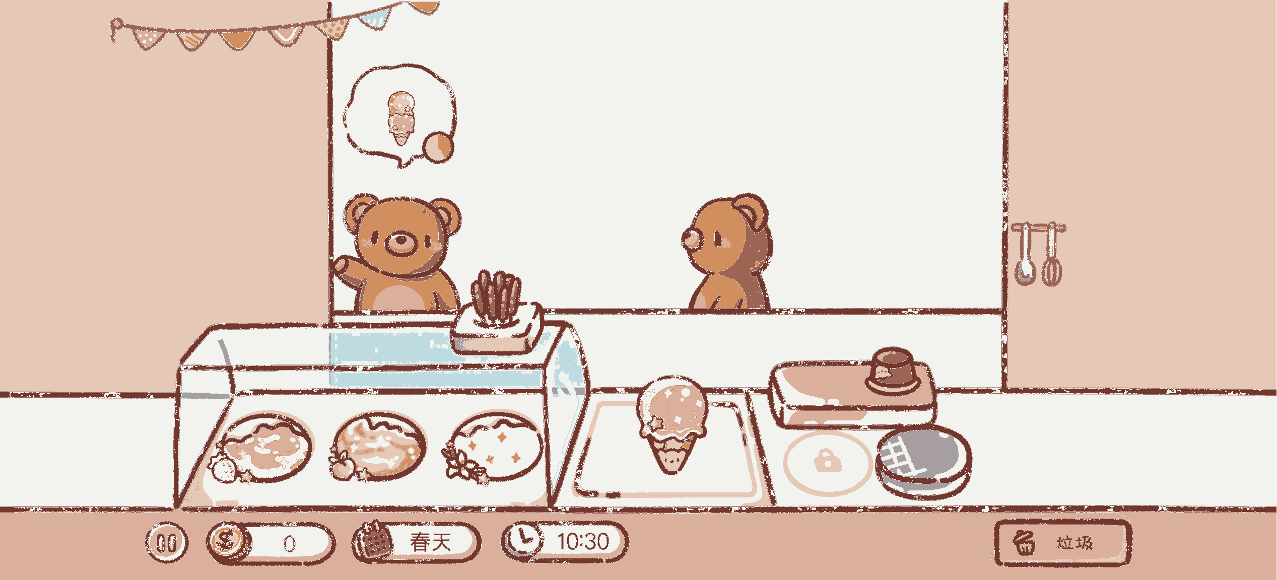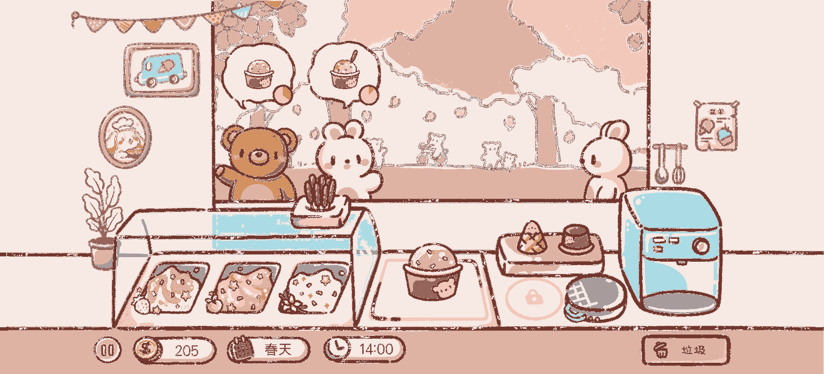 可爱的小狗狗们在夏日合力开了一家冰淇淋餐车店! 你在餐车内工作,要想尽办法满足客户们的要求。 客户有小熊、小兔子等各类小动物。 他们想要的冰淇淋五花八门。 口味可能不同,还可能要多层的,甚至要加上装饰品,或者额外的饮品。 当然,要求越多,给的也越多,赚钱嘛,不寒碜~ 你赚到的钱可升级餐车内的设备,制作更豪华的冰淇淋。 夏天,玩这种游戏最适合了吧!