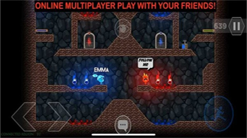 1.玩家需要协调操作两个角色,一个控制火男孩,另一个控制水女孩,通过操作来解决谜题 。