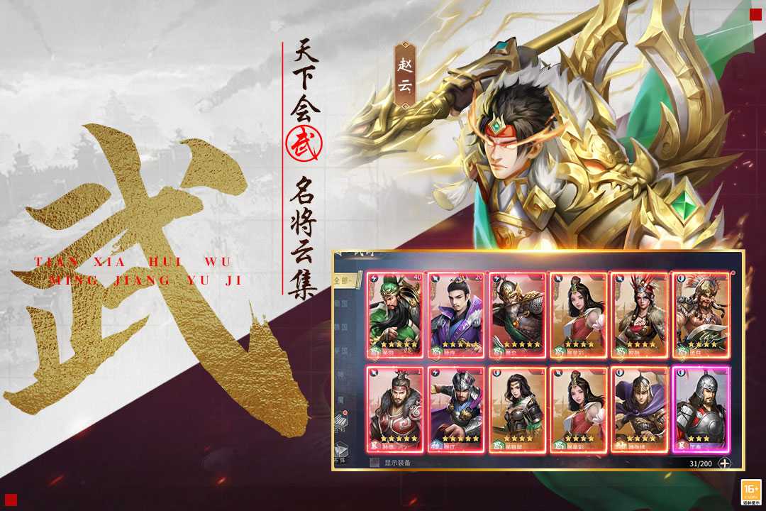 在游戏内招纳名将,与不同的名将结合相融,多元养成体系,全方位提升,通过智慧的策略搭配,