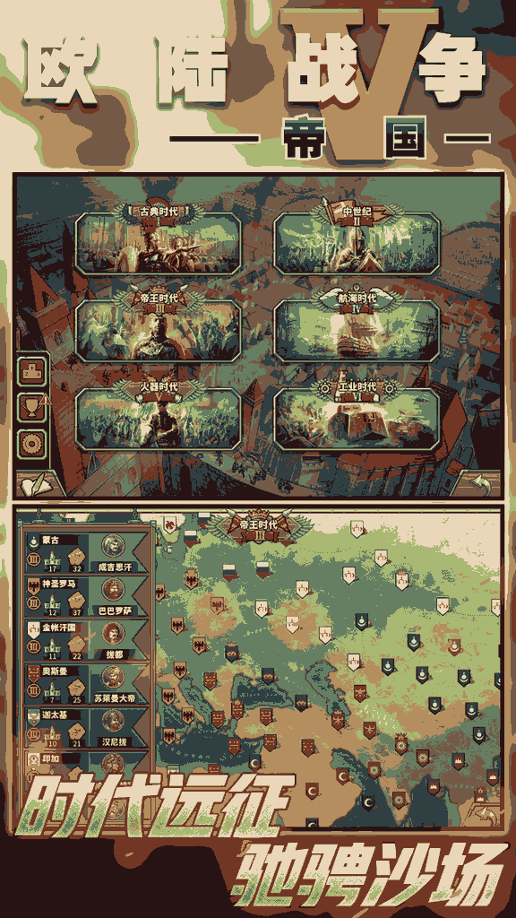一款横跨亚欧大陆、穿越2000年的单机策略手游大作 -- 《欧陆战争5》,等待各位勇士们前来参战 !在这款游戏中,共有【战役模式】、【征服模式】、【帝国模式】三种模式让你全面体验到策略战棋游戏的魅力之处!