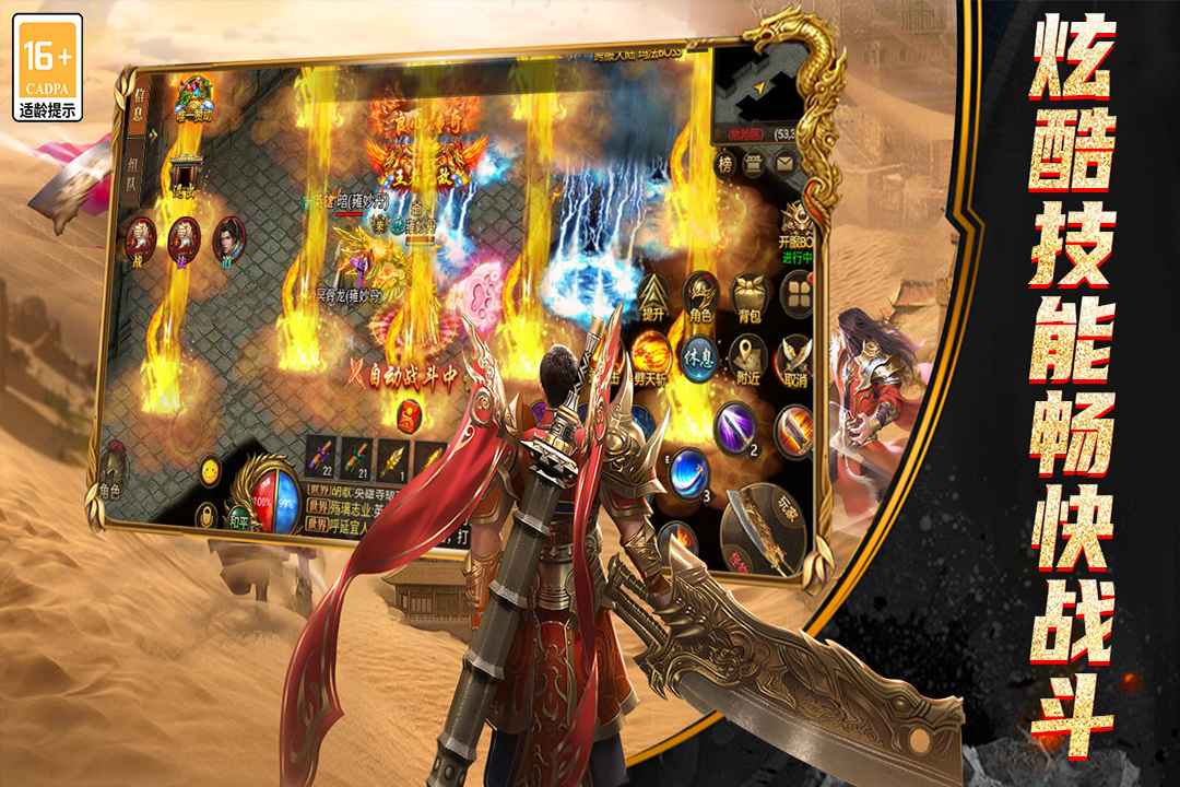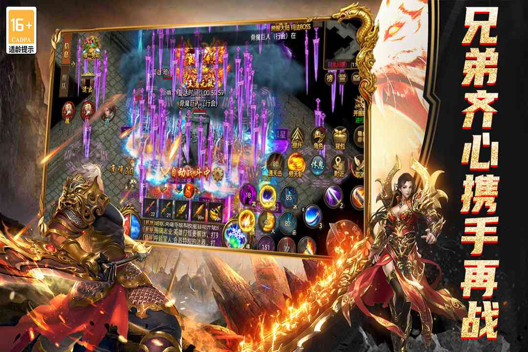 炫酷合击技能、多条养成路线,多种玩法等待玩家探索,复古画风,不变的传奇,玩家可以和兄弟一起组队杀怪,决战沙巴克,成就传奇霸业。