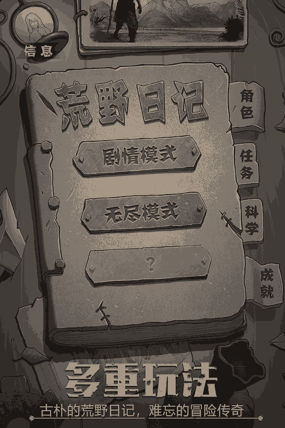 《荒野日记》的创作灵感来源于真实的历史事件,所有涉及内容真实性需要自己判断。人类因传染病面临种族危机,人口锐减,宗教改革,历史的真相又将如何?游戏参考谦卑(Humility)、诚实(Honesty)、怜悯(Compassion)、英勇(Valor)、等八美德,从八条主线分支讲述幸存的人类为了生存下去在这片荒野世界发生的故事