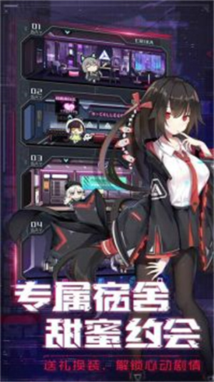 2.玩家可以装饰宿舍并与角色进行一对一互动,包括换装、送礼、聊天等,增进角色的好感度。