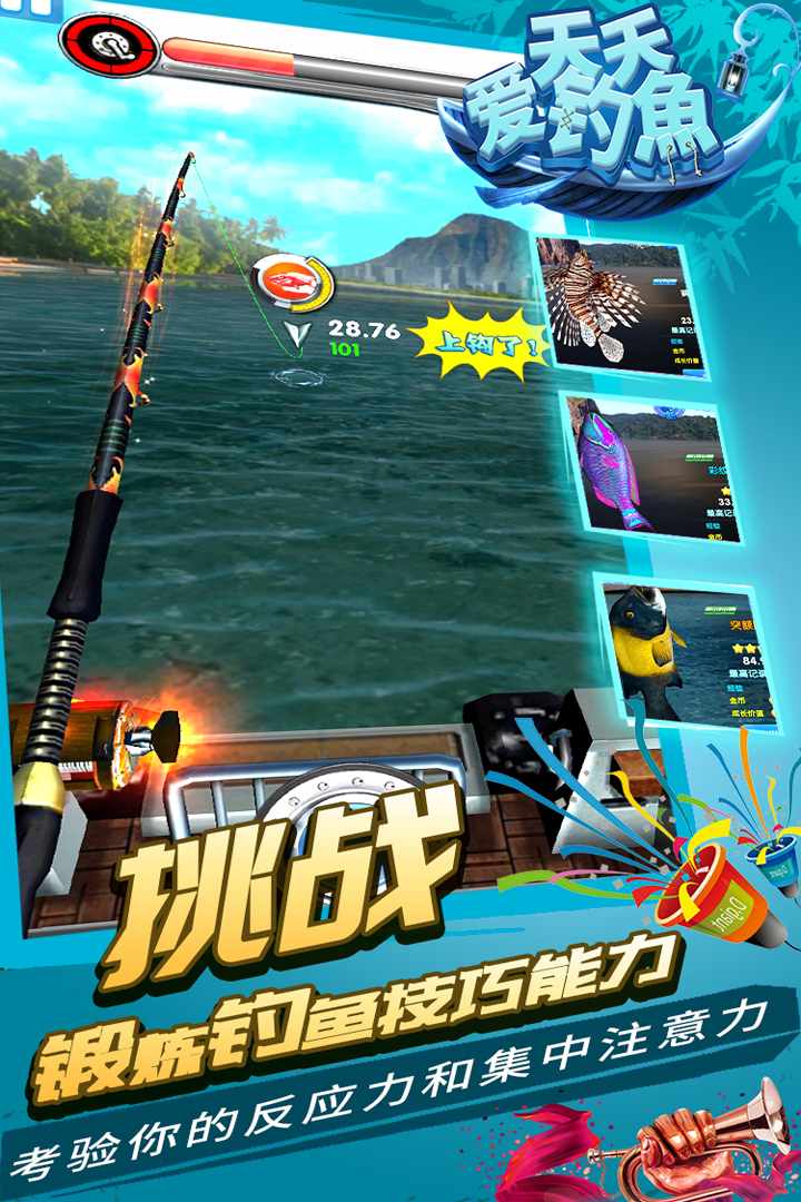 天天爱钓鱼,祝您年年有余,假期宅家即可钓大鱼,海底龙宫探宝限时开启! 颠覆传统,极度精致! 3D钓鱼手游《天天爱钓鱼》震撼来袭。 全新钓鱼题材休闲手游,超爽快、超享受紧张刺激的钓鱼游戏! 快来体验中国最棒的钓鱼游戏吧!
