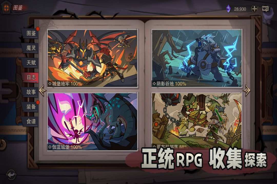 游戏拥有图鉴,日志,魔灵,怪物,装备,成就等海量的收集元素;非快餐类游戏,无过重日常任务负担,可肝可闲,体验内容,轻松养成。