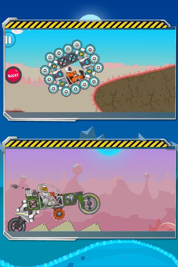 暴爽疯狂赛车是一场激动人心的街机之旅,在您建造的漫游车上在遥远行星的山丘上玩。设计出属于您自己的赛车,成为银河系的车王吧!