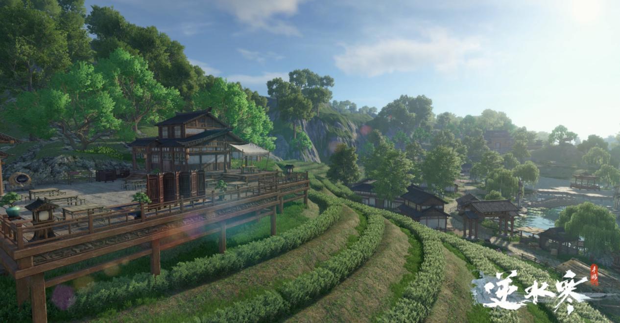 桃溪村小溪旁浣纱女在玩家经过时,会清唱《浣纱歌》。这首歌看着简单,实则非常不简单。它由唐代施肩吾的《越溪怀古》、唐代李嘉祐的《江上曲》、唐代司空图的《杨柳枝》改编而来,作曲上采用了中国传统五声调式的徵调式。虽然轻松欢快,但意境悠远,回味绵长。