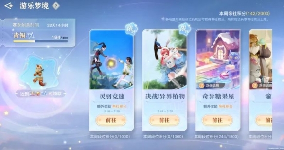 5.每周参与游乐梦境玩法次数不限,每周可获得帝社积分以及段位积分(有上限),每周一5:00重置上限。