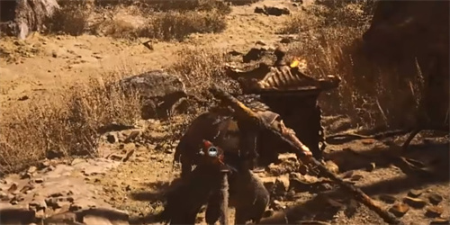3、穿过倒塌的牌匾,解锁牌匾后面的土地庙。