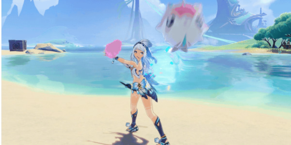 重击:消耗一定体力,向空中击出坠落时会造成水元素范围伤害的水豚球。