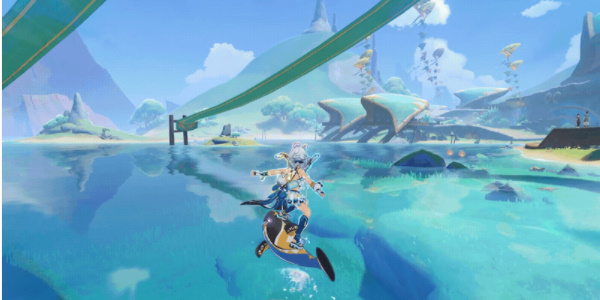 下落攻击:凝聚水元素的力量,从空中下坠冲击地面,攻击下落路径上的敌人,并在落地时造成水元素范围伤害。