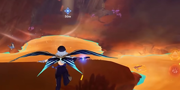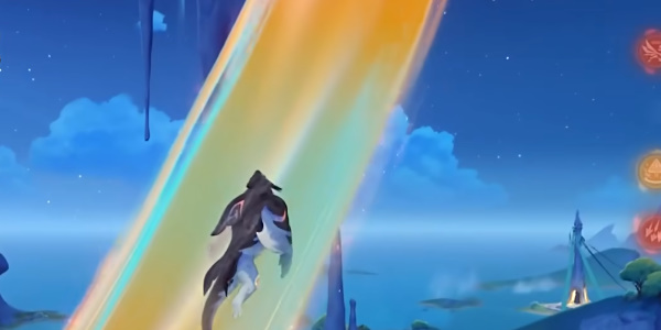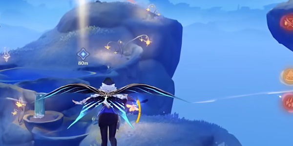 5、返回地面后,变身为鳍游龙通过游隙灵道前往浮土静界,开启隐藏锚点后,通过风场来到下一座浮岛。
