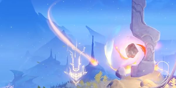 7、在浮岛上调查镌光铭印,然后调查岛上巨大的石碑开启试炼。