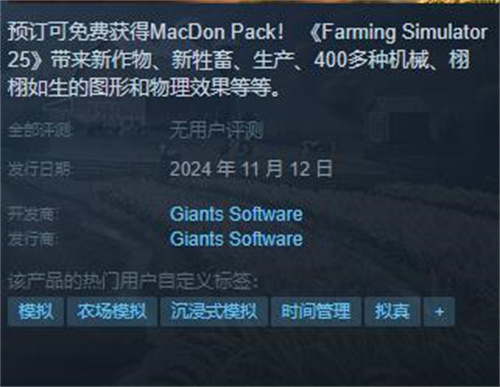 模拟农场25什么时候出,模拟农场25是一款备受期待的经营模拟游戏,这款游戏有着丰富的玩法内容,游戏上线时间已经公布,将登陆PC、PS5、Xbox Series及Mac平台,支持简体中文。这款游戏带来的农耕乐趣是前所未有的,想知道何时能玩到这款震撼大作的小伙伴们赶快一起来看看具体的上线时间吧!