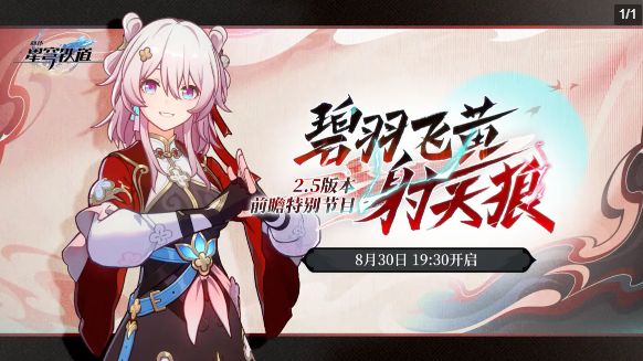 《崩坏:星穹铁道》2.5版本「碧羽飞黄射天狼」前瞻特别节目将在8月30日19:30正式播出。