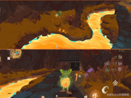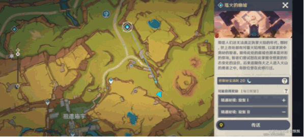 3、魂附匿叶龙,拾取岩浆下的传接球,放置机关内,解锁隐藏传送点;