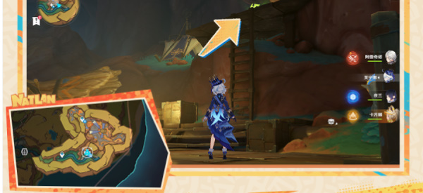 5、之后击败背后的愚人众,向南进入洞窟;来到下图这个位置,在右上方的平台附身匿叶龙。