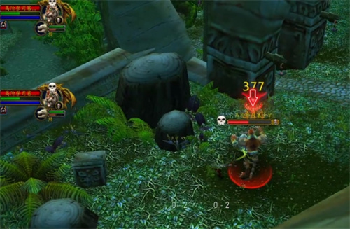2、首先,清理掉BOSS周围的小怪,然后使用宠物吸引其中一个跟班(小BOSS)的仇恨,并快速跑出门口,利用跟班和大BOSS回到位置的时间差,分离出仇恨。