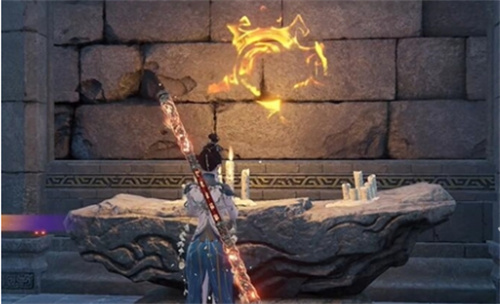 3、接下来我们在密室中用迦南对着墙上的烛龙图案,然后使用礼敬的动作。