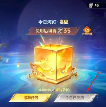 可能是你已经把今天的河灯用掉了。如图,右下角显示“今日已使用”,就是自己已经误触用了自己的河灯。