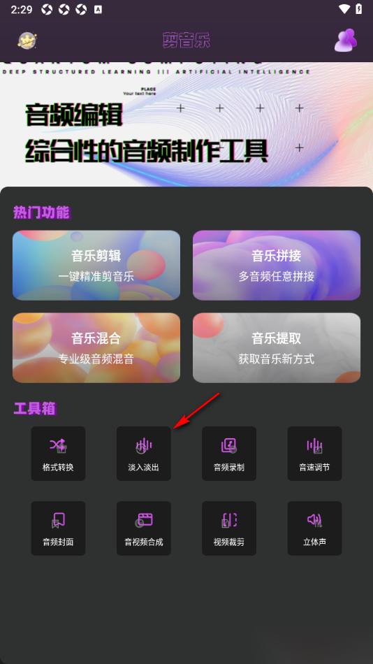 1.来到当前打开的操作界面中,选择首页面上显示的【淡入淡出】功能,将其点击打开。