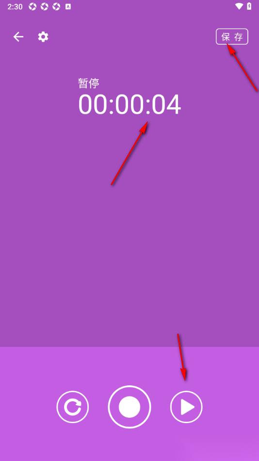 3.录制成功之后,可以点击播放按钮试听一下效果,之后点击顶部的【保存】按钮即可保存到本地。