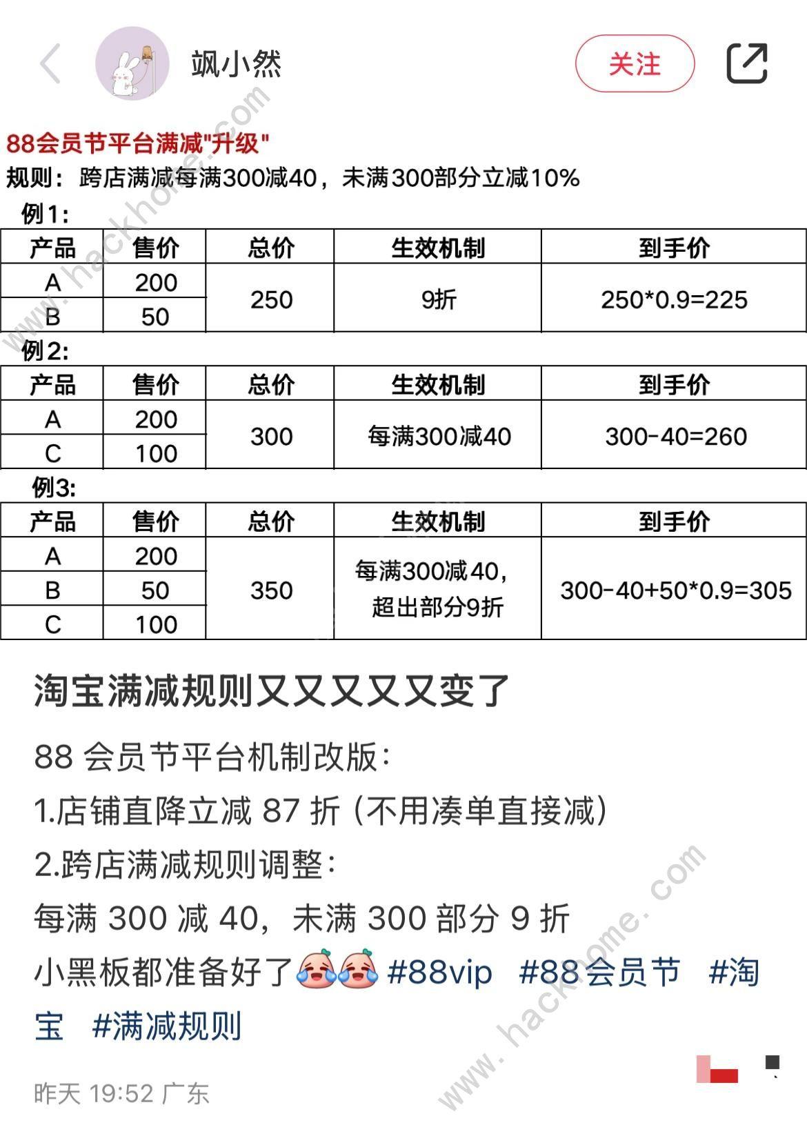 2024年淘宝 88 会员节跨店满减最新规则如上图所示,跨店满减每满300减40,未满300部分立减10%,