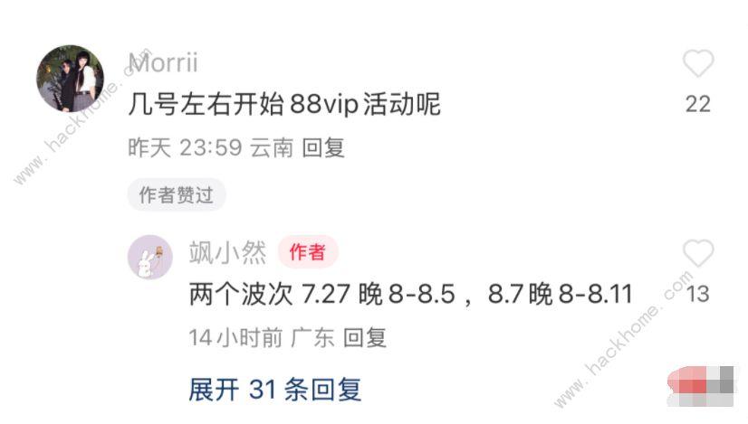 88 会员节活动将有两个时间段:分别为 7 月 27 日晚 8 点~8 月 5 日和 8 月 7 日晚 8 点~8 月 11 日。