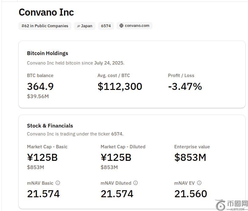 Convano 已通过公司债券筹集了 45 亿日元,并利用这些资金购买365 比特币。该公司比特币战略办公室负责人 Taiyo Azuma 表示,目标很明确:到 2025 年底达到 2,000 个 BTC,到 2026 年 8 月达到 10,000 个 BTC,到 2027 年 3 月达到 21,000 个 BTC。