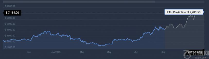 与比特币(BTC)一样,CoinCodex 也预测以太坊(ETH)将在未来几个月继续上涨。该平台预测 ETH 将在今年晚些时候突破 7000 美元大关。CoinCodex 分析师预测 ETH 将于 12 月 2 日达到 7283.53 美元,从当前价格水平达到 7283.53 美元将引发约 68.85% 的上涨。