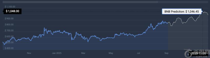 预计币安的 BNB 币也将在今年晚些时候跟随比特币 (BTC) 和以太坊 (ETH) 创下历史新高。CoinCodex 预测 BNB 将创下 1046.45 美元的新高,时间为 11 月 20 日。如果成功,这将标志着 BNB 首次突破四位数价格区间。从当前价格水平达到 1046.45 美元,将带来约 22.66% 的涨幅。