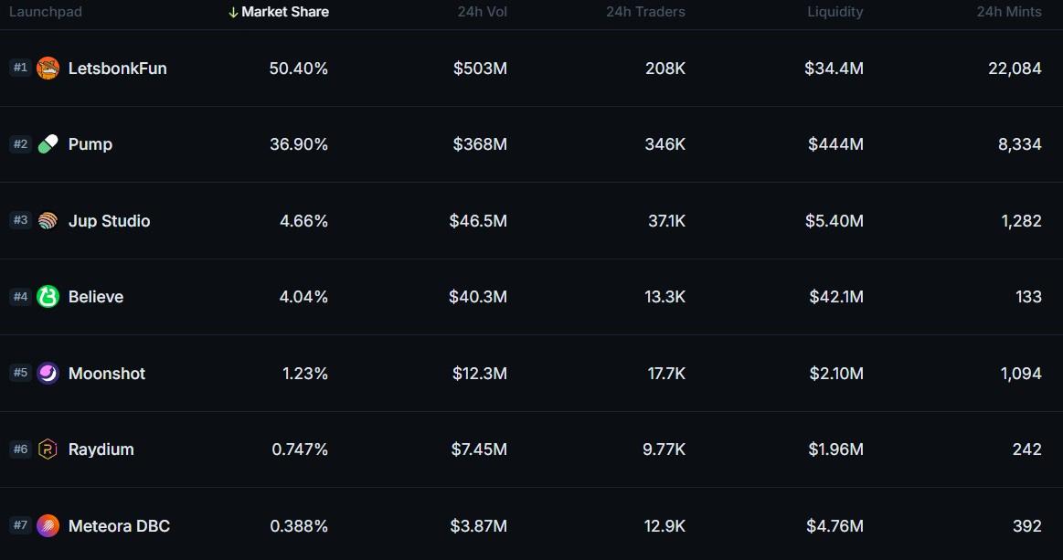 Raydium是最大的赢家之一。这个DEX现在收取的费用达到了2025年初迷因币狂热时期以来未见的水平。在4月,LetsBonk与Raydium合作,为创作者提供访问该交易所流动性池和交易机器人的权限。