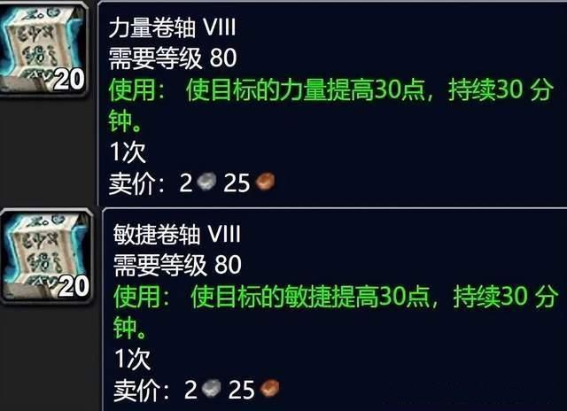 属性卷轴是TBC版本重要的PVE消耗品,物理职业可以使用力量和敏捷卷轴强化属性,坦克还能使用保护卷轴获得额外护甲值。而在WLK版本中卷轴可以由铭文专业制造,且力敏卷轴不与萨满大地之力图腾/DK号角叠加,保护卷轴不与萨满石肤图腾/圣骑士虔诚光环叠加,彻底成为废纸。提醒各位玩家前夕版本开放前一定要清空库存卷轴哦。