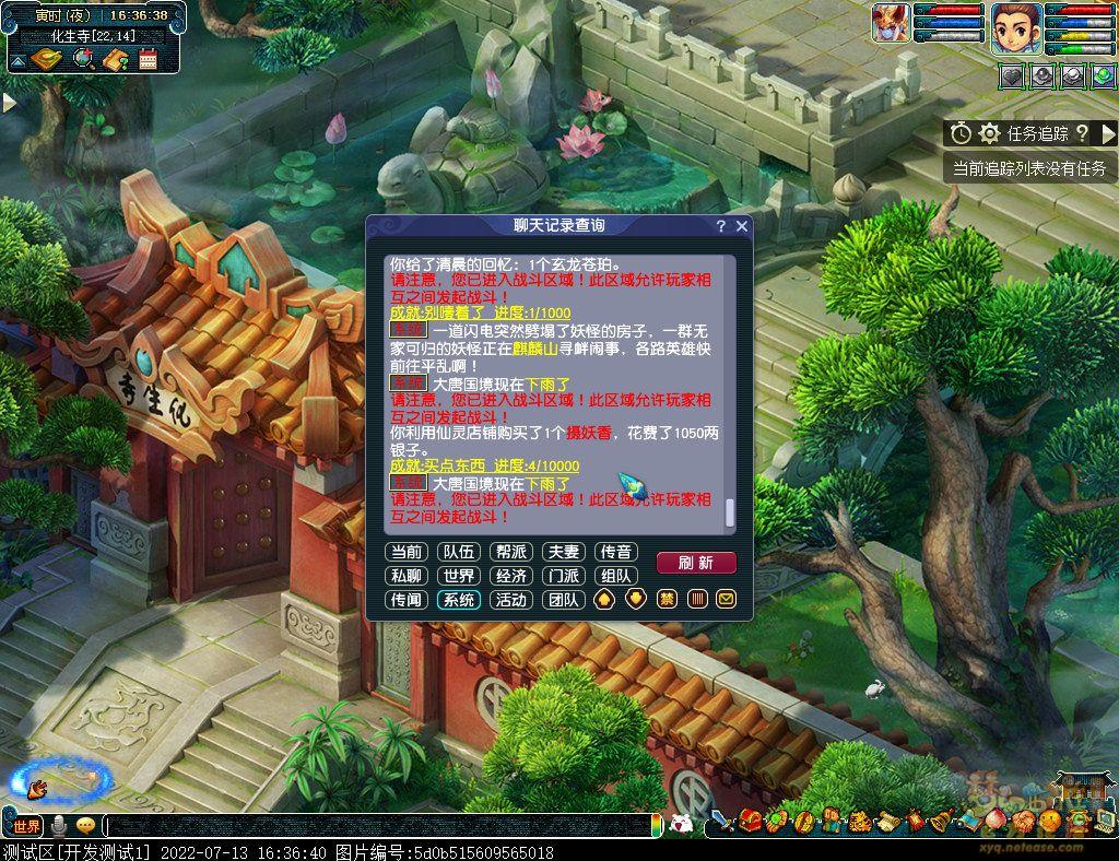 天气系统开放后,我们游戏界面的左上角留了一个小位置显示实时天气情况,天气情况目前分为四种:无天气、刮风、下雨、下雪。目前开发测试区来看,大唐国境经常下雨、北俱芦洲经常下雪、大唐境外经常刮风。每次出现天气变化的时候系统会有提示。(其余的地图暂未发现天气变化。)