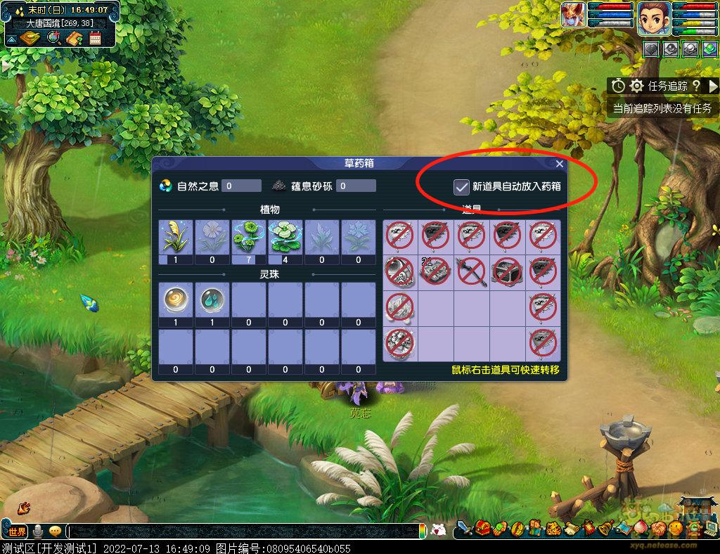 在任意一个炼化炉/便携式炼化炉处可以获得草药箱,草药箱占用一个道具栏,不可以存入仓库。草药箱可以存储我们获得的草药、灵珠、自然之息等。(点击炼化炉右上角草药箱标志获得)