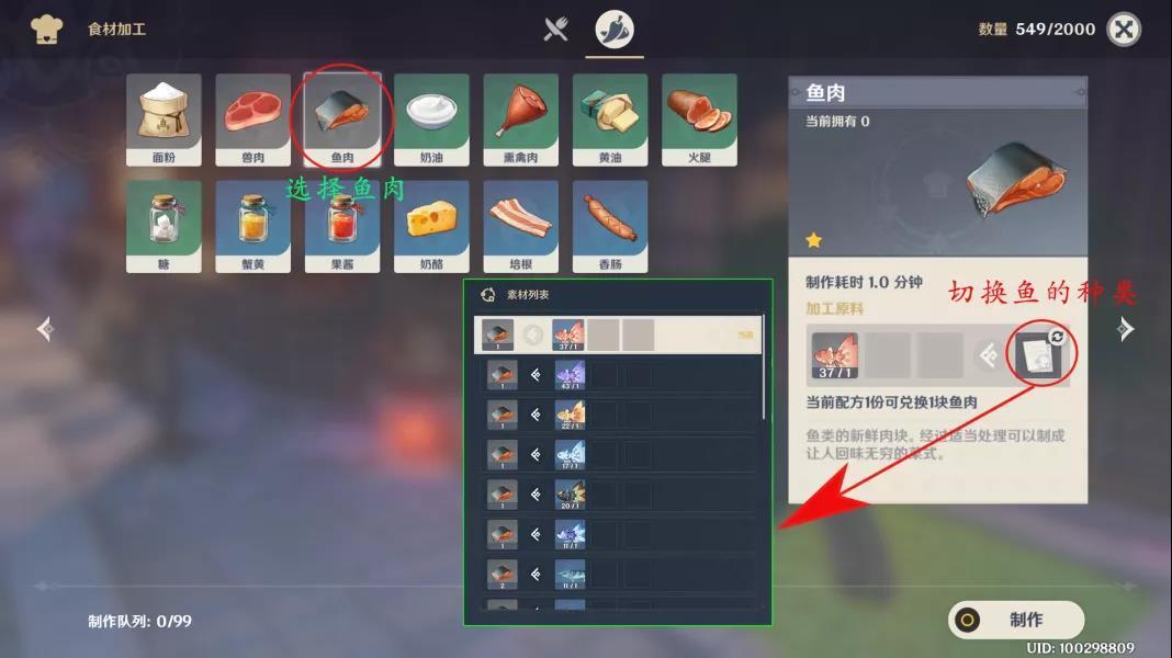 ▍制作鱼肉如果有多余的鱼,可以在烹饪-食材加工中制作成鱼肉