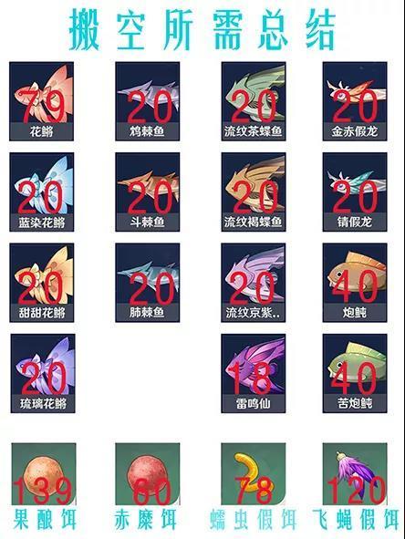 ◆兑换所有物品所需鱼的数量&鱼饵数