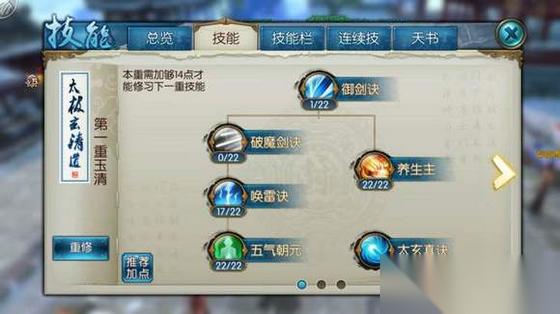 五气朝元:真气恢复技能,优先级低,可不点或后期补。神剑流更需关注技能循环而非无限蓝条(后续详述)。