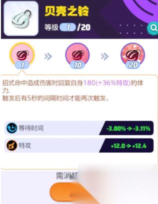 气势头带每15秒触发一次,效果是能在体力低于25%的时候,在三秒内回复已损失体力的6%,贝壳之铃每五秒触发一次能在招式成功命中造成伤害的时候,回复自身一定的体力,带上这两件能让容错率大大提升。