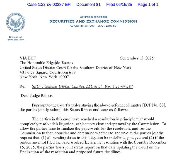 长期运行法律斗争 美国证券交易委员会 (SEC) 与 Gemini Trust Company 之间的纠纷似乎即将结束,此前双方已向联邦法院提交了一份联合状态更新文件。该文件已提交至纽约南区联邦地区法院,SEC 和Gemini 告知法院,他们在 2023 年 1 月首次针对 Gemini 和 Genesis Global Capital 提起的证券案中达成了“原则性解决方案”。