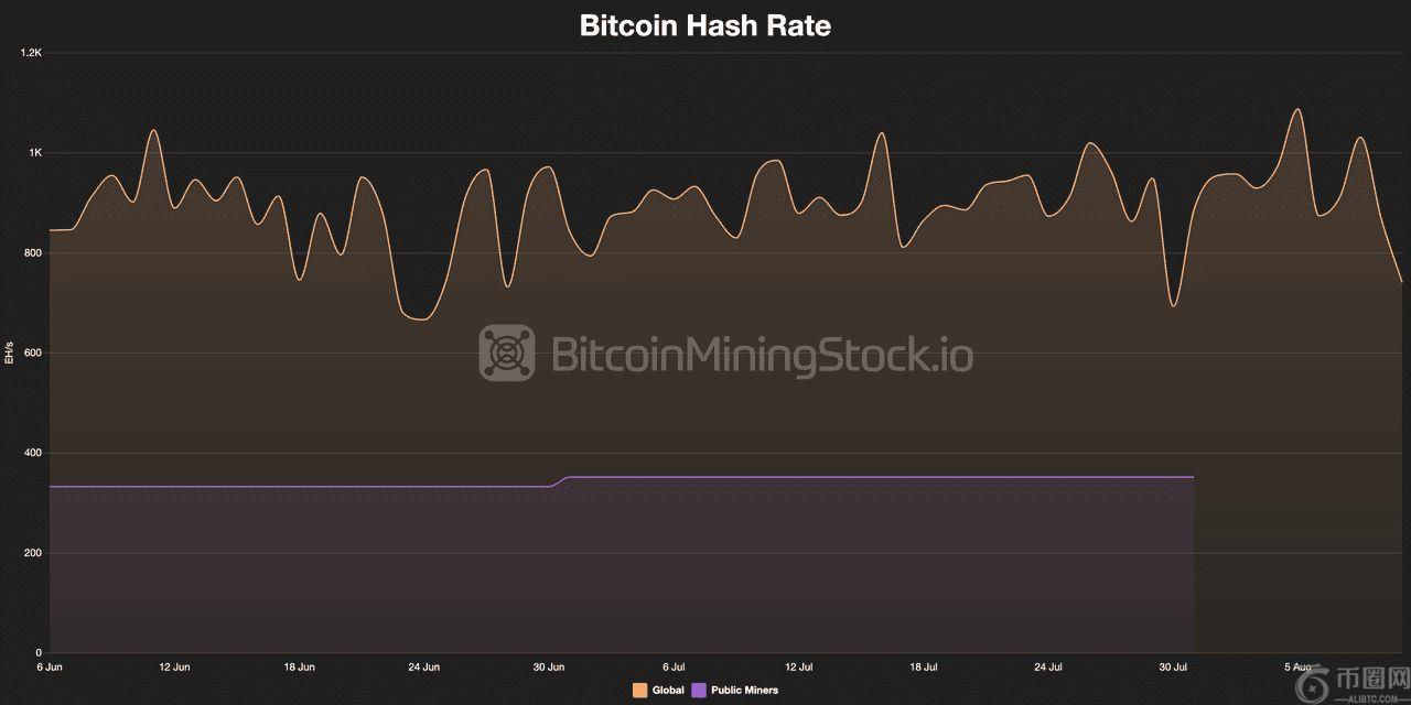 过去三个月比特币算力变化| 资料:BitcoinMiningStock