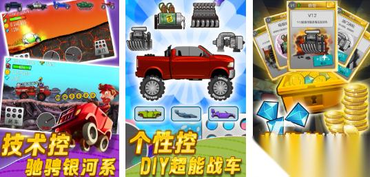 简直就是越野爱好者的天堂,崎岖的山路一看就很有挑战性。开着车在上面七扭八歪,确实会让人觉得很有刺激性的。而且改装系统也是比较给力的,可以根据不同的地形去有效改装车辆。更换一个大轮胎之后,爬坡也会变得比较稳定,加一个强力的引擎,更加可以迅猛的加速玩起来真的是让人觉得很带劲。你还可以选择一路的收集金币,然后去解锁更加厉害的车,总会让人觉得酣畅淋漓。