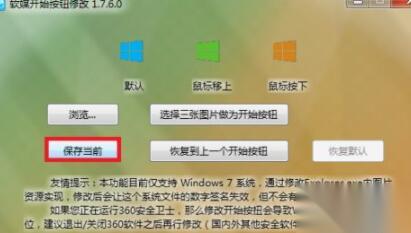 4、最后点击保存当前即可!设置过多个开始按钮,可点击“恢复到上一个开始按钮”切换按钮图标;