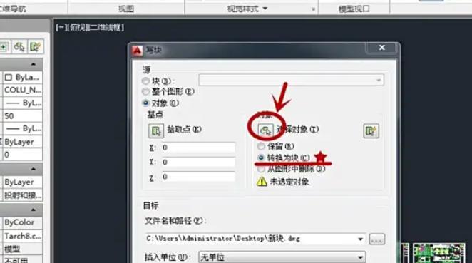 在弹出的“写块”对话框中,点击 【选择对象】 按钮。在绘图区用鼠标框选需要保存的部分(如特定图层、图形或块),避免选中多余对象。选完后按回车或空格键返回对话框。