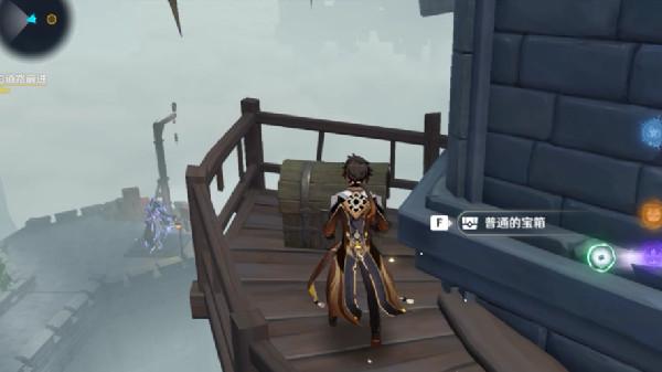 9.在走到这个爬梯处的时候先往咱的右手边方向走,顺着栈道一路上旋,在道路尽头发现我们的第二个宝箱。