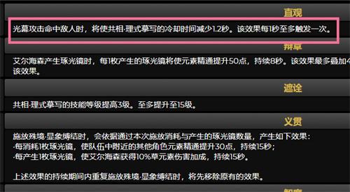 1命效果:光幕攻击命中敌人时,将使共相·理式摹写的冷却时间减少1.2秒。该效果每1秒至多触发一次。