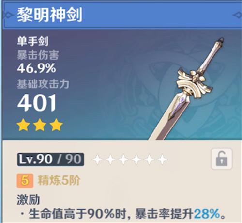 而裁叶萃光可以提供88.2%爆伤加成、4%的暴击率加成以及120%元素精通加成,和5精的黎明神剑相比,如果带爆伤头,暴击伤害就会到100多,整体来说虽然比1精裁叶萃光差,但是也差的不多。