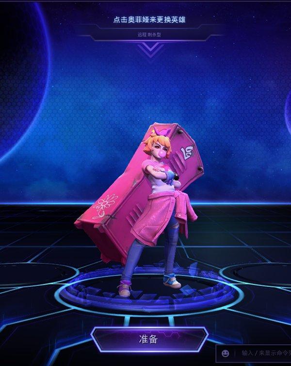 当然小编最喜欢的还是这套萌萌的粉系配色,准备界面奥菲娅拽拽的吹着泡泡糖,双手环抱。潜台词当然是“你们这些战五渣”,从PTR的英雄强度来看,她的确有资格这么拽。