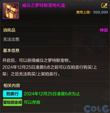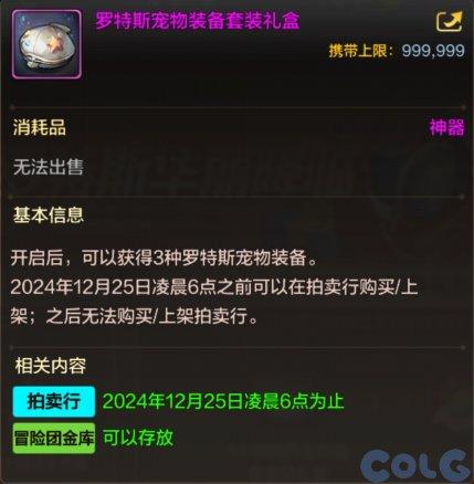 神秘礼盒无法交易,可根据概率开启随机获得其中一种宠物礼盒,获得的宠物礼盒可上架拍卖行。