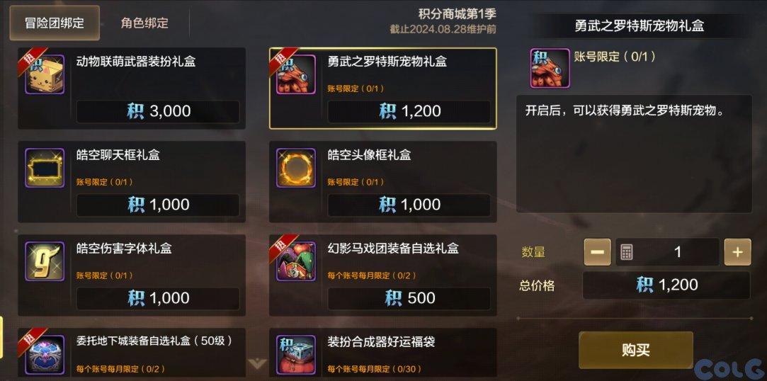 积分商城上架罗特斯宠物,属性与礼包内的宠物属性一致。